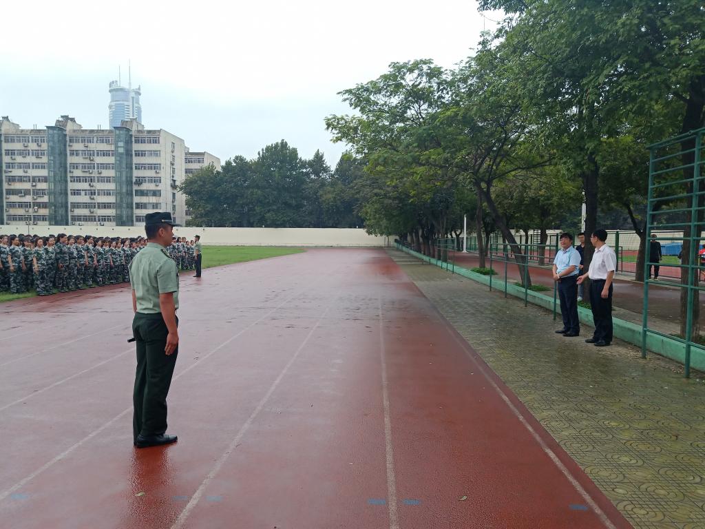 校领导在绵绵秋雨中观看了新生训练科目,详细了解了2019级新生参训情况和训练进度情况。校党委书记黄道峻对新生们以顽强的毅力坚持在风雨中训练,表现出的良好精神风貌给予了高度评价。