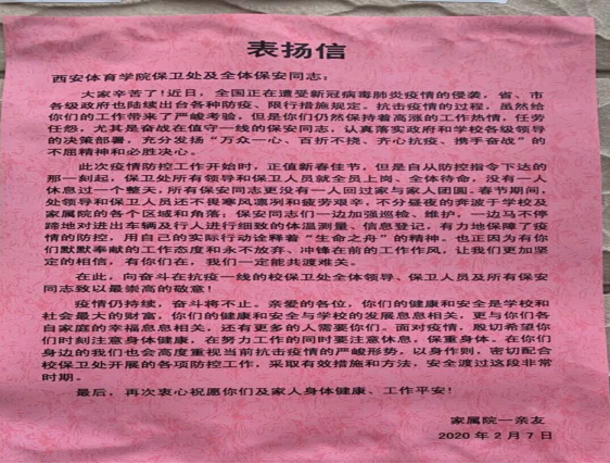 “不用扬鞭自奋蹄” 保卫处在得到疫情扩散的消息后,反应迅速,措施到位。第一时间拿出应对方案,作出应对措施,从严格门禁登记制度,到进出车辆严格消毒;从出入人员仔细登记并测量体温,到非本校人员一律禁止入内;从《保卫处防控新型冠状病毒肺炎应急预案》的,到《保卫处全体党员抗击疫情冲在一线的决心书》;这一系列的举措折射的是保卫处应对突发事件的能力、反映的是保卫处对全校师生负责的初心与执着。传递的是保卫处全体工作人员对初心使命的坚持、对理想信念的坚守、对目标任务的坚信。