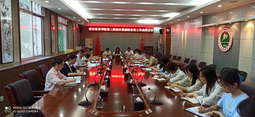 2024年5月13日下午,财务处在行政办公楼2层大会议室召开了万象城allwincity官网第三轮校内巡察工作动员大会。财务处主管校长李富生同志,党委第二巡察组组长朱舰同志,党委第二 巡察组副组长杨少玉同志,巡察组联络员刘亭同志,巡察组成员祝博文、张琳琳同志,以及财务处党政领导班子成员及全体教职工出席了本次会议。会议由财务处处长雷振华主持,欢迎第二巡察组同志们对财务处工作进行巡察,对各项工作进行全面检阅,以督促和鞭策我们更好完成自身的工作,实现更高、更好的发展。