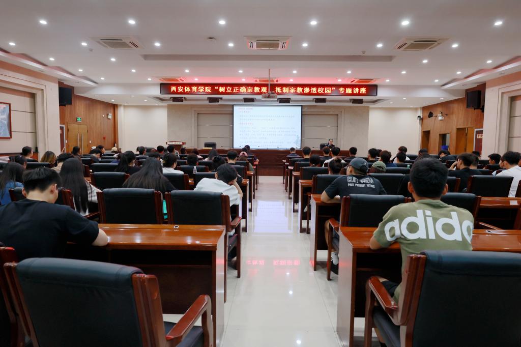 为深入贯彻落实习近平总书记关于宗教工作的重要论述,提高师生防范非法宗教活动意识,提升抵御宗教渗透校园能力,普及宗教活动政策法规,5月15日,党委统战部邀请西安市公安局碑林分局一级警长吕欣为万象城师生作《树立正确宗教观抵制宗教渗透校园》专题讲座。各二级学院(部、校)辅导员,学生党、团员代表及党委统战部全体同志参加讲座。校党委校长办公室主任、党委统战部常务副部长张军主持。