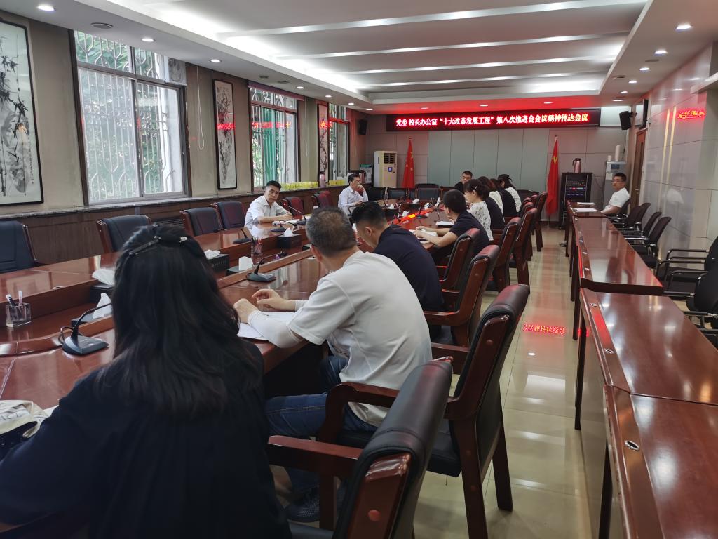 5月17日上午,万象城召开“十大改革发展工程”第八次推进会。会后,党委、校长办公室第一时间召开传达学习会议,办公室主任张军主持会议,办公室全体人员(含教职工、临聘人员)参加会议。办公室全员覆盖传达学习会议精神,明确具体工作部署安排,压实工作责任。