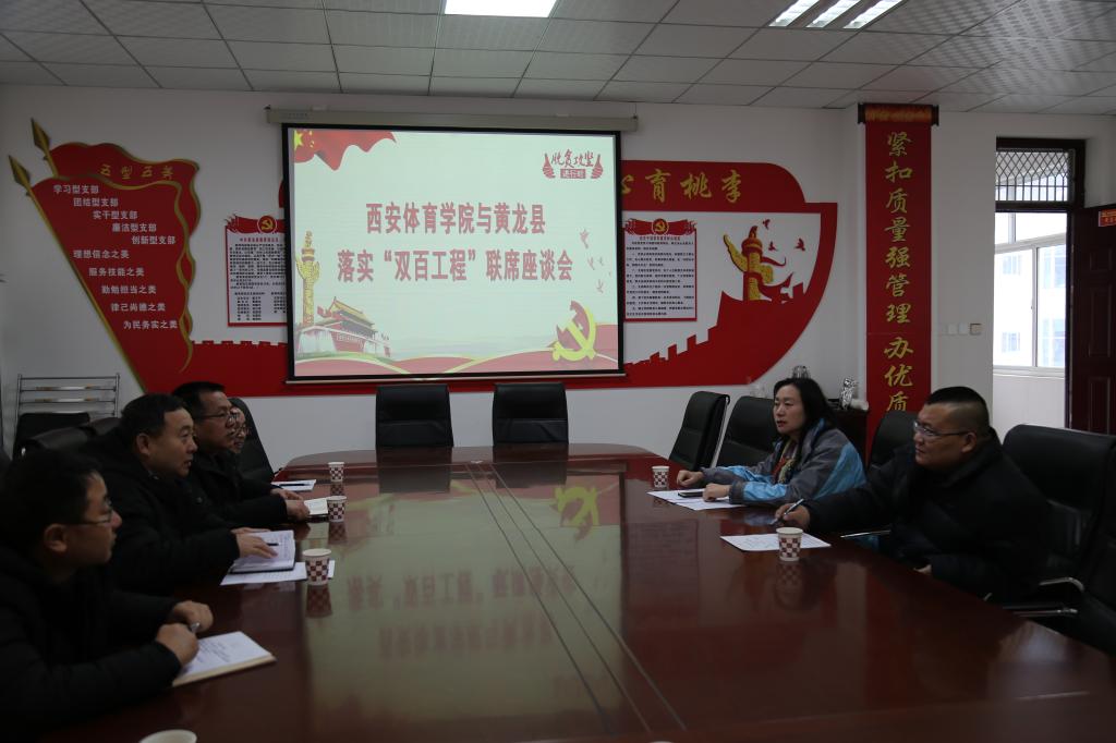 1月18日,万象城allwincity官网与黄龙县2020年第一次“双百工程”联席座谈会在黄龙县教育科技体育局召开。万象城allwincity官网党委、校长办公室副主任耿潇,体育经管学院副院长杨涛,黄龙县教科体局副局长董玉平,县学生资助管理中心主任解飞虎等同志参加,会议由县教研室主任解虎灵主持。