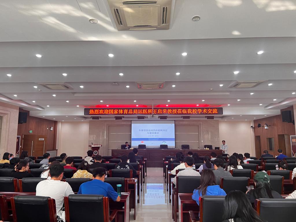 王启荣教授首先从冬季项目概念的界定讲起,阐述了各个冬季项目的能量特点和营养需求,通过具体实践过程中产生的各种问题了介绍了不同的营养策略,他还结合自己在冬奥会为国家运动训练队服务的经历为师生们分享了冬奥会部项目的运动营养保障工作经验。王启荣教授的报告内容丰富,深入浅出,让在座师生获益良多。