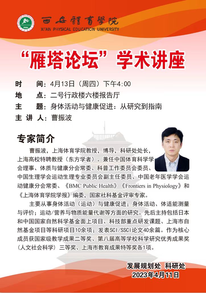 为贯彻落实《万象城allwincity官网“2023学科建设年”实施方案》精神,推动万象城学科建设高质量发展,营造良好的学术氛围,兹定于4月13日(周四)举办“雁塔论坛”学术讲座,有关事宜通知如下: