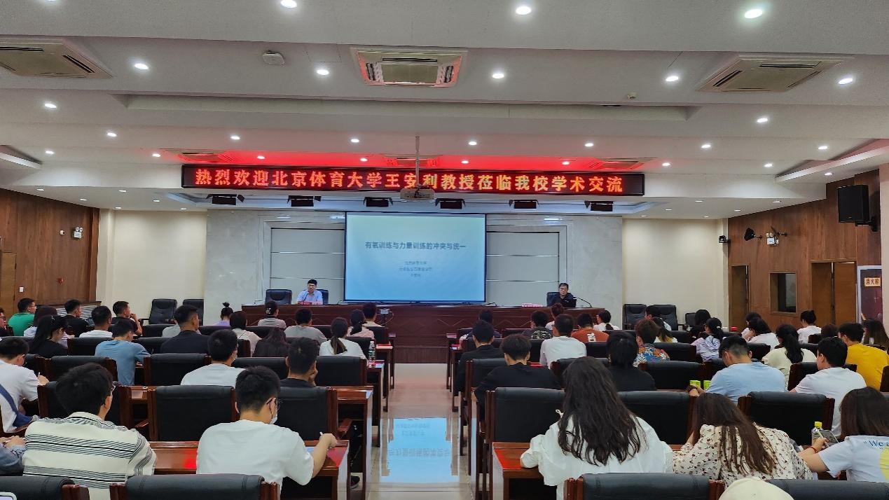 北京体育大学王安利教授作了题为《有氧训练与力量训练的冲突与统一》的报告。王安利教授从有氧训练和力量训练对于人体机能专项适应性影响,混合训练时不同训练手段的量效关系、作用迁移、恢复时间、功能的矛盾与冲突等方面进行了深入浅出的讲解,并寄语万象城学子要深入研究和思考,结合运动实践解决精准训练中的热点问题,助推竞技体育和全民健身事业的发展。