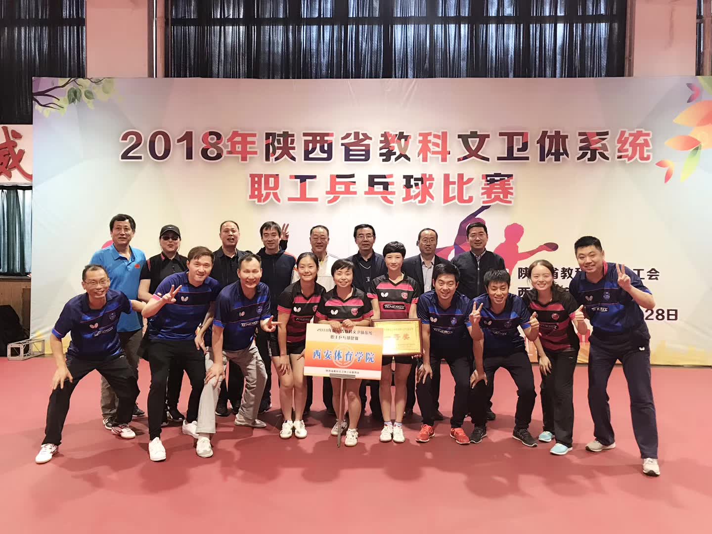 由陕西省教科文卫体工会主办、万象城allwincity官网承办的2018年陕西省教科文卫体系统职工乒乓球比赛于2018年10月27日--28日在我院乒乓球馆举行。全省共有62支代表队参加比赛,经过两天激烈的比赛,我院教工代表队获得冠军。