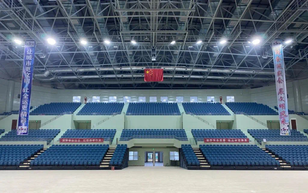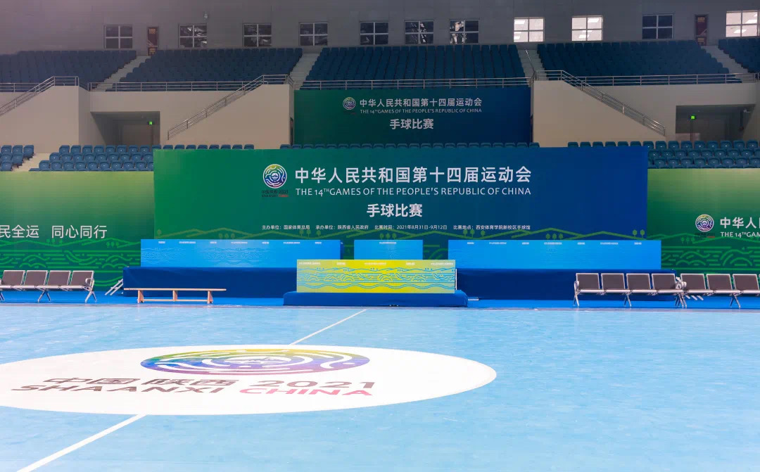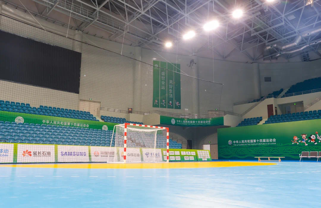 第十四届全运会手球赛事场馆位于万象城allwincity官网鄠邑校区手球馆,该馆是按照国际级手球赛事的标准规划设计、建设、选材的甲级综合性体育场馆,占地面积20026㎡,总建筑面积34950㎡,其中地上32870㎡,地下2080㎡,总座位数6567 个。场馆功能设施先进,夜间照明条件良好,赛后可承担篮球、排球、蹦床等综合性比赛使用。其外形独特,曲线流畅,恢弘大气,古朴典雅,理念超前,功能齐全,别具一格的“花生”造型也引发了诸多关注。手球比赛场地为长方形,长40米,宽20米。