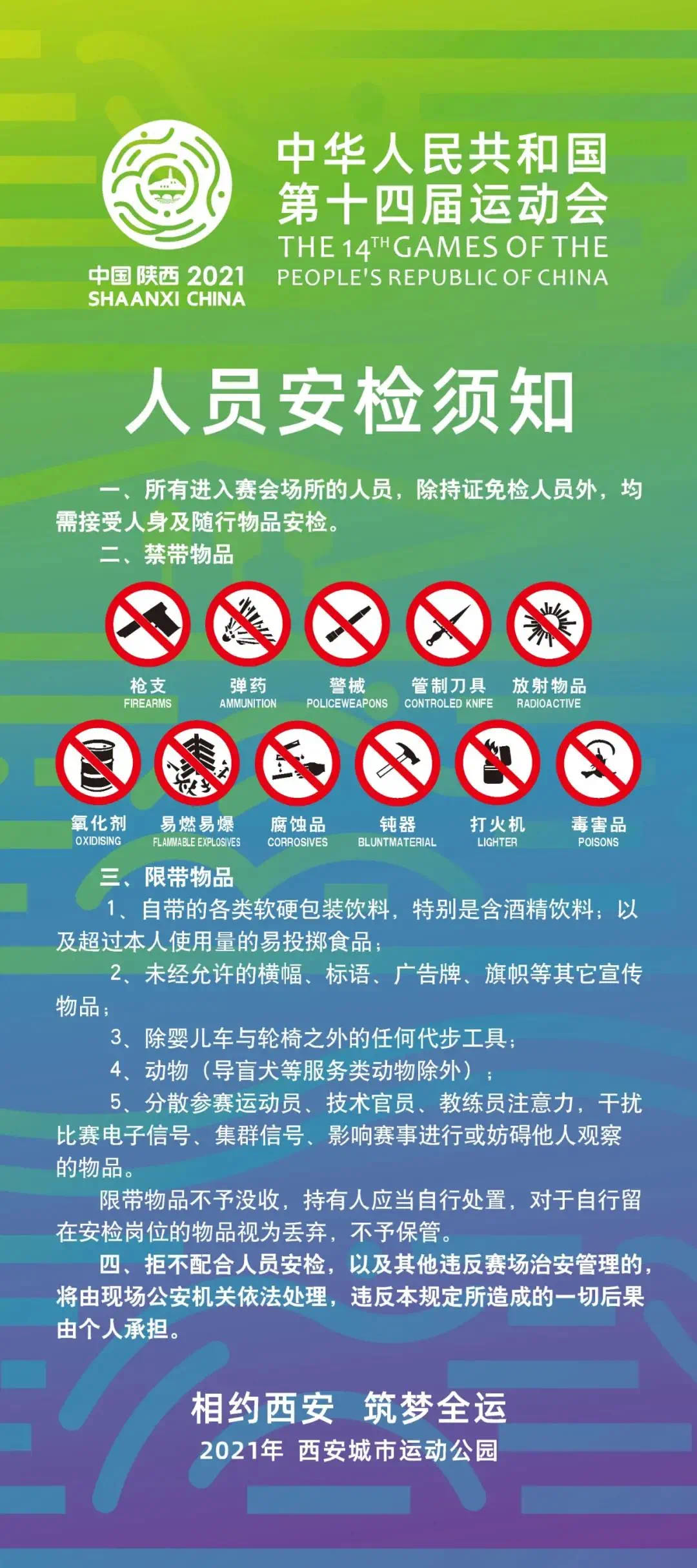 在进场观赛前,所有的涉赛、观赛人员,应保证个人核酸检测、疫苗接种、防疫健康信息、中高风险地区打卡等4项全部完成,生成绿色个人电子全运码,才可以顺利进场。