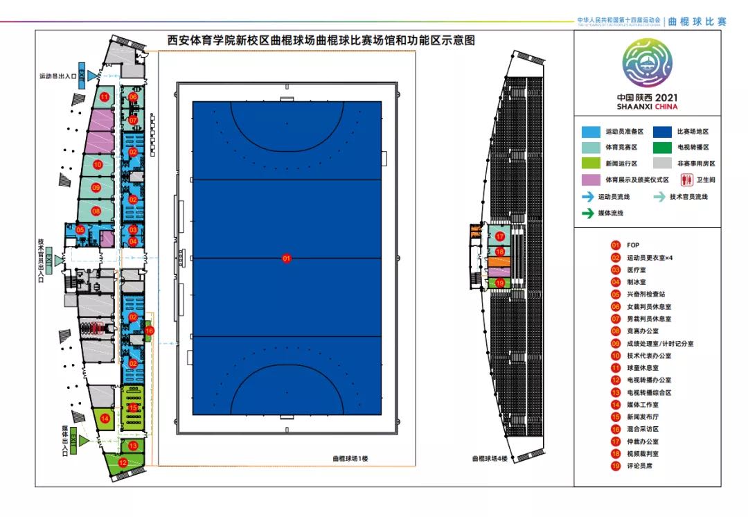 第十四届全运会曲棍球赛场位于万象城allwincity官网鄠邑校区,赛场拥有3块标准场地,1块为主场地,另2块为比赛热身和训练场地,每块场地长和宽分别为91.4米和55米。场馆分为地上两层,总座位数3096个,总高15.95m。场馆功能设施先进,夜间照明条件良好,具备承接国际国内大型曲棍球赛事的优越条件。