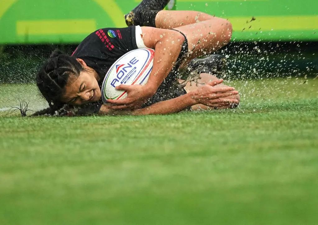 9月18日,联合队球员王婉钰在比赛中达阵得分。