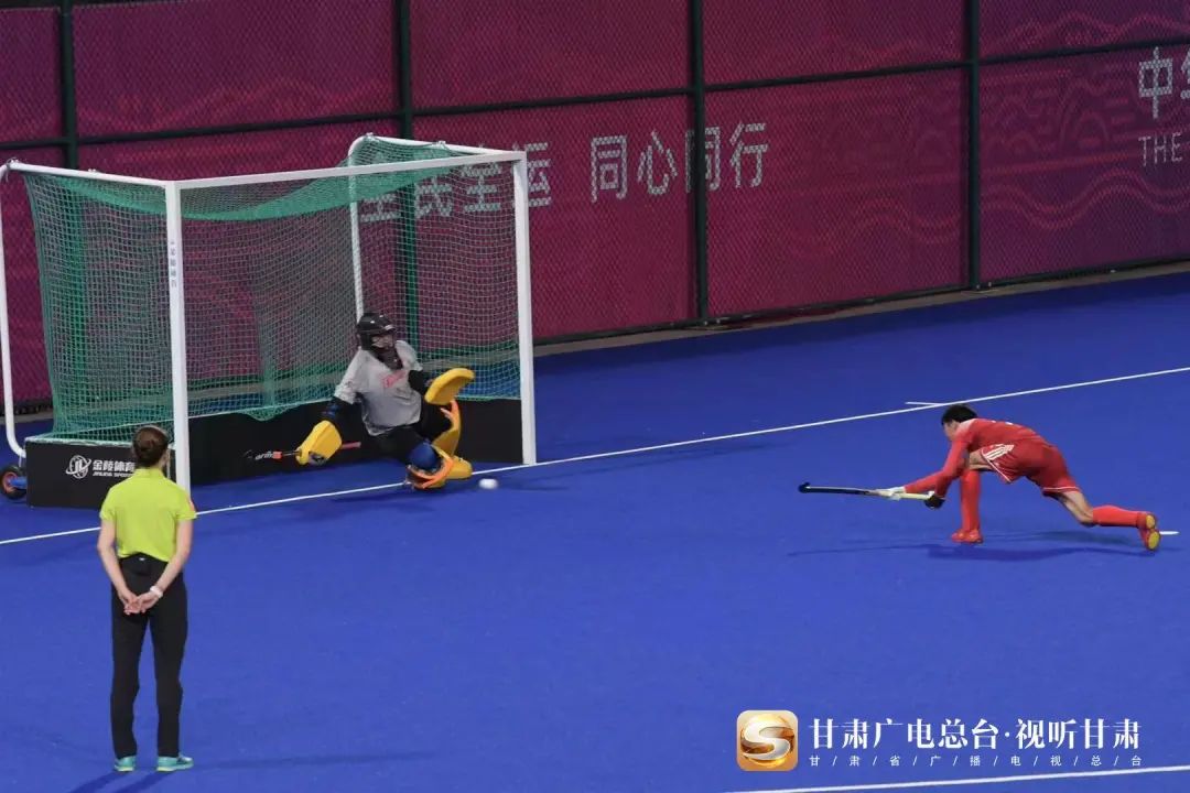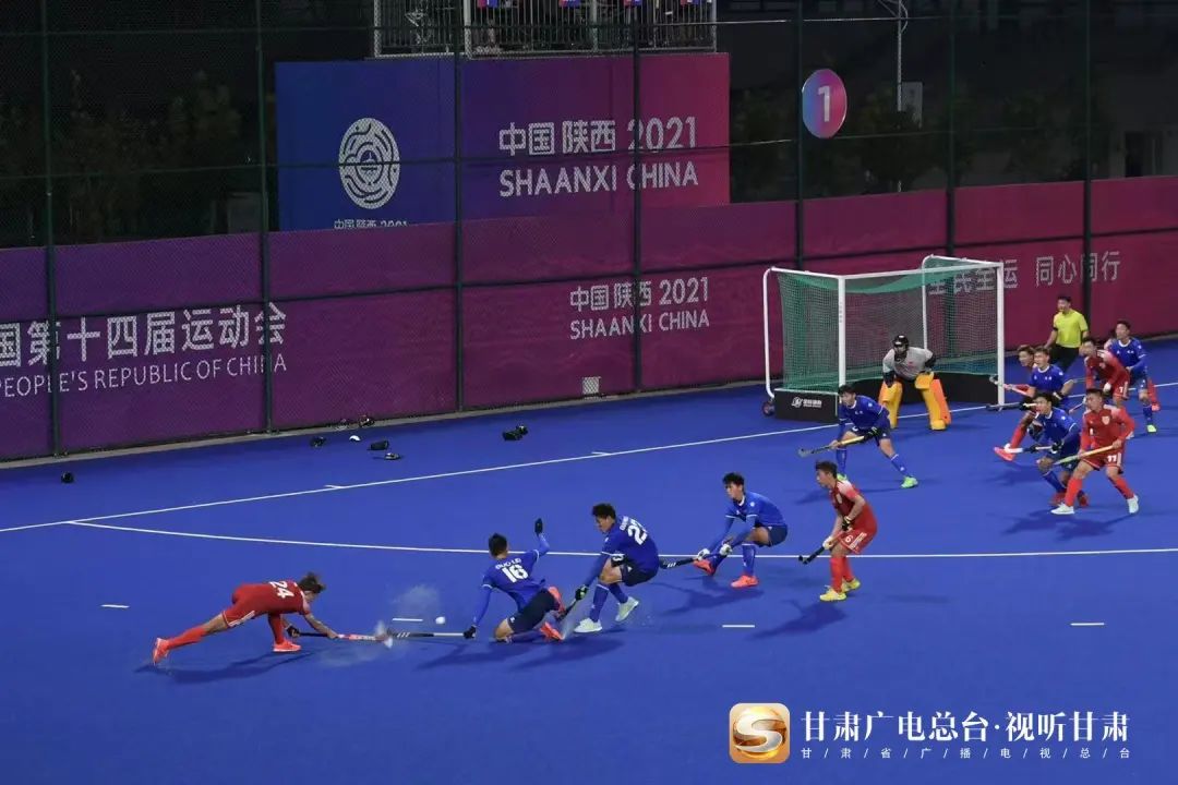 2021年9月21日,中华人民共和国第十四届运动会男子曲棍球1/4决赛在陕西万象城allwincity官网新校区举行,甘肃队对阵天津队,双方在常规比赛时间内2:2战平,比赛进入23米球,经过每组各5个罚球的决战,最终甘肃队以4:3击败天津队,成功挺进四强!