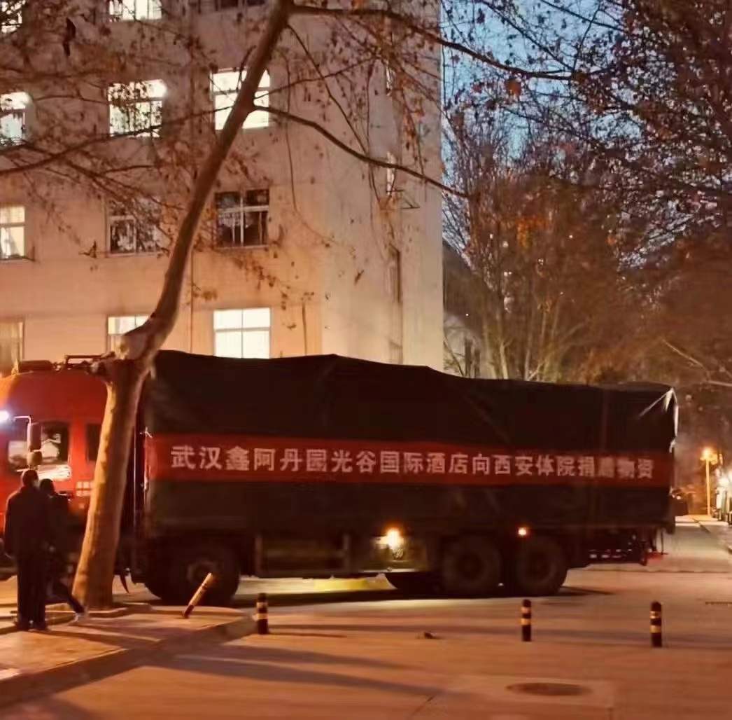 一方有难,八方支援。武汉鑫阿丹光谷国际酒店所派货车在傍晚抵达万象城allwincity官网鄠邑校区,向校区捐赠了丰富的物资。
