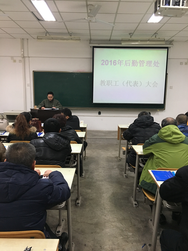 依照院工会《关于召开二级单位教职工代表大会的通知》(万象城工字[2015]05号)的部署与要求,后勤管理处于2016年1月19日,在教学楼106教室召开首届职工代表大会。会议由后勤管理处总支书记分会主席宋国权主持,后勤管理处(集团)处长(总经理)许伟代表党政和工会分会向职工代表作2015年度工作总结和2016年工作思路计划的报告。院工会查晓峰副主席代表学院工会讲话,向职工代表介绍和通报学院工会建设和发展情况以及和职工切身利益的有关事项的说明。参会代表进行了热烈讨论,提出许多好的建议和意见,代表们对后勤管理处领导班子一年来的工作给予了充分的肯定。宋国权书记做总结讲话,对教职工提出的具体意见及建议进行说明和响应性表态并代表领导班子向后勤干部职工一年来的辛勤工作表示敬意和感谢,并送上新年良好祝愿。