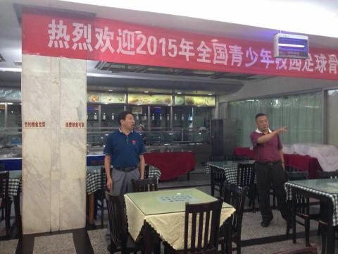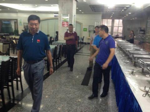 2015年7月15日下午副院长白跃世同志、院长助理段秋学同志等领导一行在后勤管理处(集团)负责人及下属部门有关人员陪同下,对我院即将举办的2015年全国青少年校园足球骨干师资国家级培训班使用场地、器械、教室、医疗服务、学员餐厅、校园环境等后勤服务准备工作进行检查和指导。白副院长对后勤员工冒酷暑努力工作表示慰问,对后勤各项准备工作表示满意;同时要求后勤管理处(集团)继续努力,提高服务标准,进一步完善各项工作,全力保障本次培训工作的顺利进行。