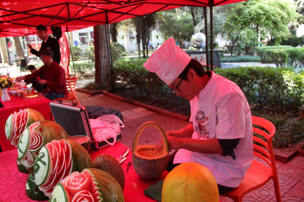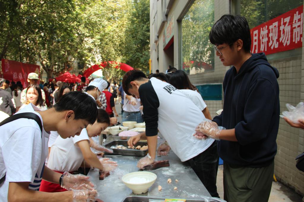 本次活动,学生餐厅开展了“留言墙”、“好运砸金蛋”、“中秋猜灯谜”、“月饼亲手做”、“厨艺大展台”、“传统手工艺小站”、“精雕细琢”等多个项目。“留言墙”上承载了同学们对未来的期许、对家人的祝福和对老师的感谢;“中秋猜灯谜”的谜板前,同学们跃跃欲试、兴趣盎然;在“月饼亲手做”的展台前餐厅大厨巧手示范冰皮月饼的制作方式,同学们看的仔细,学的认真,做的精美;在“厨艺大展台”上,各位大厨的绝活引的同学们赞不绝口;人气最火爆的要数“传统手工艺小站”,被喜欢糖画和面人的同学们围的水泄不通,一个个精美的糖画、面人深深地吸引着同学们的目光;“印度飞饼”和“精雕细琢”的表演中,大厨们为大家展示了精湛的技艺和刀工,引得同学们驻足观看。在活动的过程中,工作人员认真负责,同学们踊跃参与,气氛热闹非凡,在一片欢声笑语中,将活动推向了高潮。