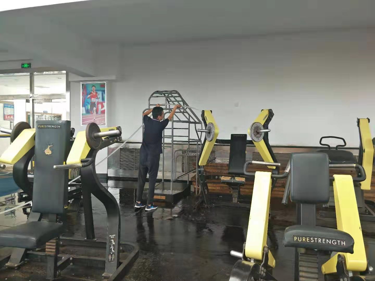 场馆中心对各场馆、场地、器材、设施进行全面整理。清点运动器材,并将其归类摆放,冲洗运动场地、防滑地毯,擦拭场馆器具、门窗;保洁绿化中心工作人员将所有垃圾桶清洗干净,为9月1日将实行的垃圾分类做好准备工作,进行校园大扫除,对校园卫生死角进行消毒、清洗,清除校园堆放杂物,打扫教室并对教室多媒体设备进行调试,为返校师生营造一个舒适、温馨的学习、训练、科研环境;公寓中心将每一间宿舍打扫干净,布置整洁,并以热情的态度迎接提前到校的学生及新生家长;餐饮中心将学生餐厅布置一新,提前准备好新鲜食材,为学生及家长献上丰盛的一餐;动力中心对万象城水、电进行再次检查,并对空气能设备进行最后调试,用专业的知识、娴熟的技能保障万象城新学期水、电正常运行;修缮中心对校园基础设施进行最后检查,对还未完工的工程进行安全围挡;会议(网球)中心、体育艺术中心将会议室、艺术大礼堂打扫干净,布置整齐;后勤办公室制作迎新展板,做好新生接待工作。
