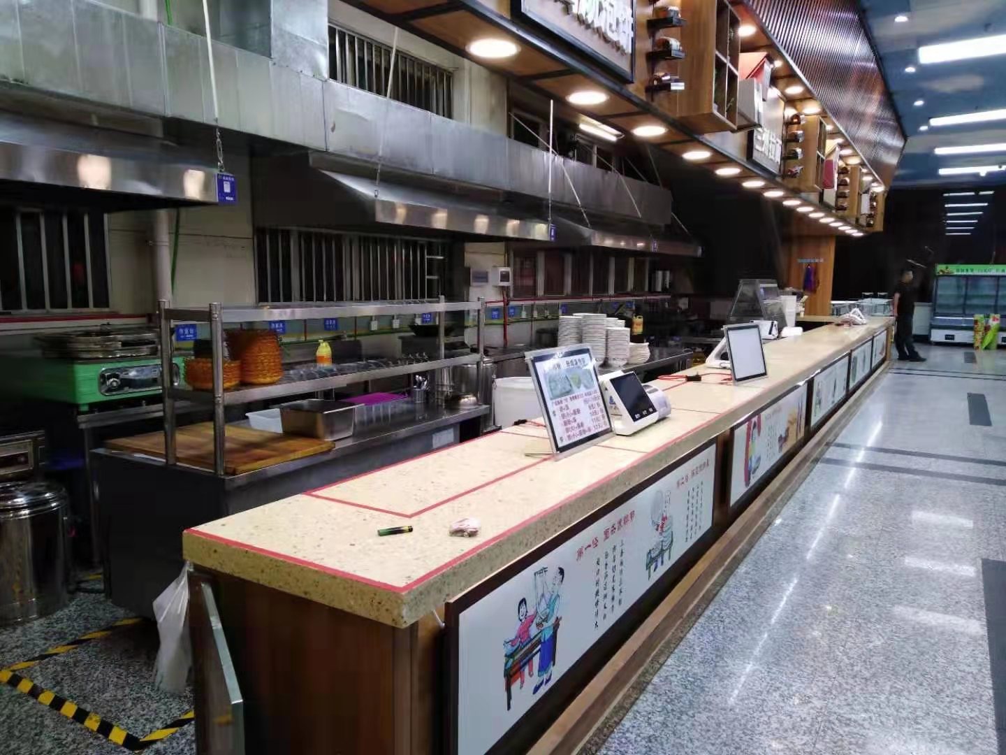 餐饮中心的工作人员首先对备餐间、售餐区、就餐大厅彻底清洁,之后逐一进行卫生消毒,对卫生死角、楼梯间、餐具回收车等进行重点消毒;规范厨具、餐具及其他用品的摆放位置,提高厨具,餐具的消毒标准;聘请专业人员对学生餐厅排油烟系统、扶梯、货梯进行全面检修、养护,全方位保障万象城师生在学生餐厅的就餐安全。