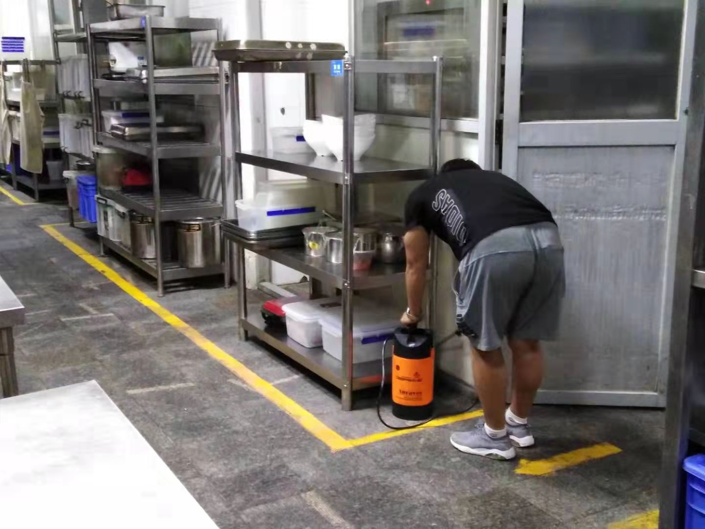 2019年8月9日后勤管理处(集团)餐饮中心对学生餐厅的设施、设备进行养护、检修,备餐间清扫消毒,除鼠灭蝇、清除蟑螂等工作。