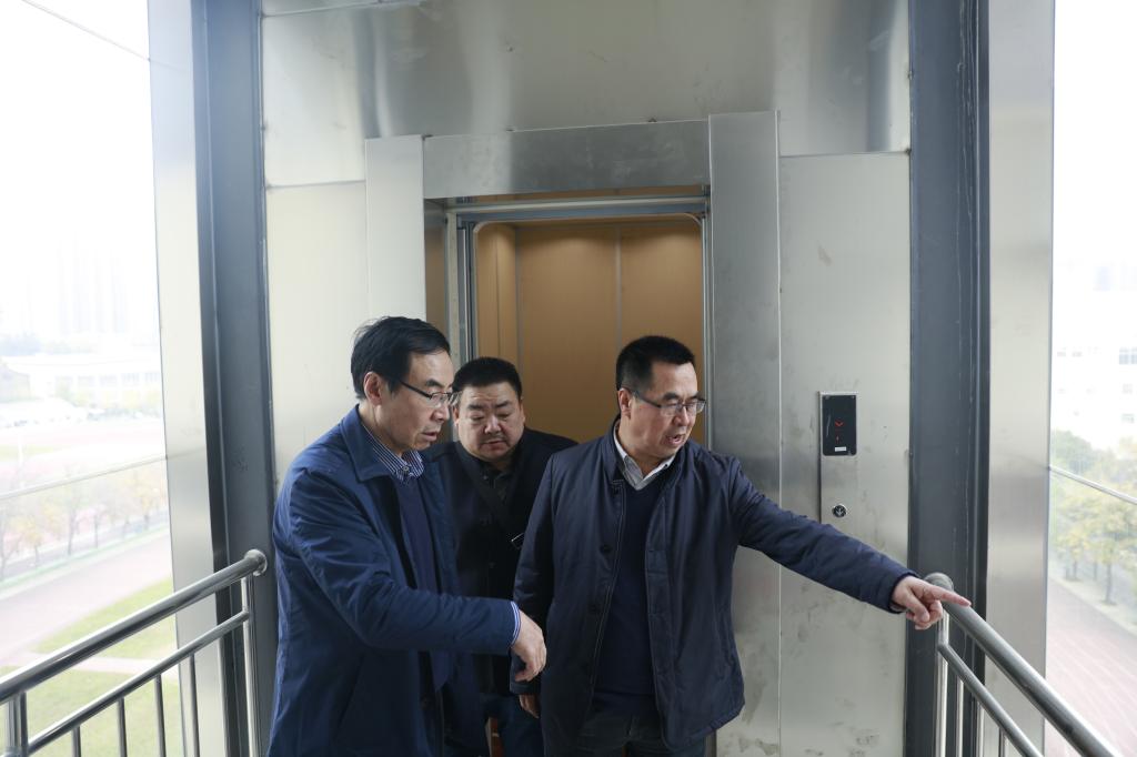 11月11日上午,校长朱元利、副校长李富生对我院校家属区二期加建九部电梯的使用情况进行了检查,后勤管理处(集团)处长许伟及后勤管理处(集团)相关职能部门工作人员陪同检查。