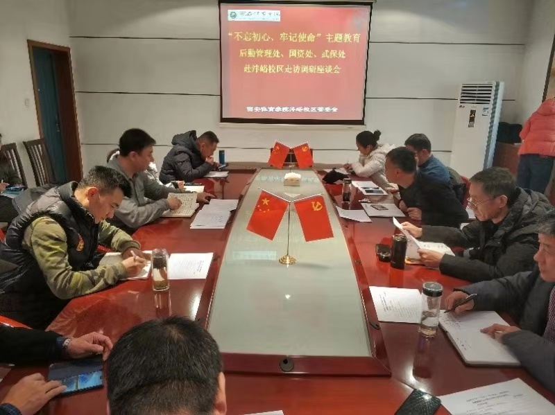 2019年12月6日后勤管理处(集团)与国有资产处、武保处、沣峪校区管委会召开“不忘初心、牢记使命”主题教育暨后勤服务保障座谈会。