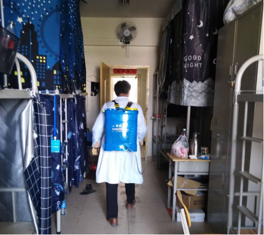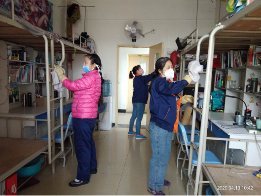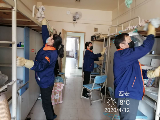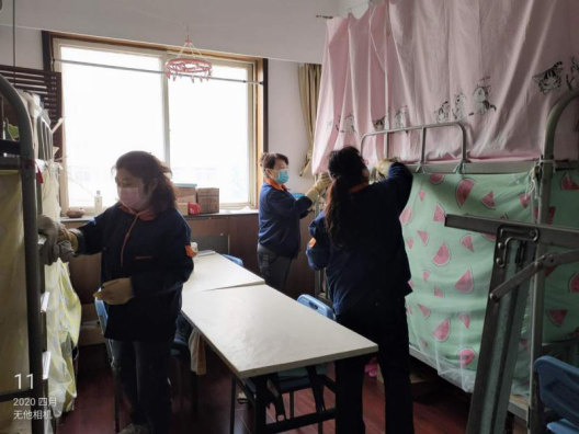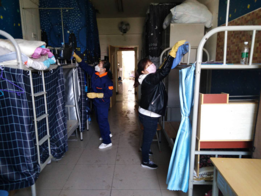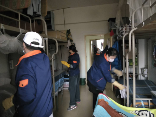 为了使学生在开学后拥有一个健康、安全、干净的居住环境,自4月7日起,学生公寓管理中心的工作人员除每日对公寓公共区域清洁消毒外,开始对校本部1200余间学生宿舍进行全面清洁、消毒及通风。工作人员认真、专业、仔细、全面,绝不留下一个死角,同时认真做好消毒记录。