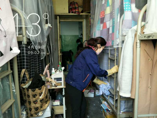 疫情暴发以来,后勤管理处(集团)学生公寓管理中心的工作人员一直坚守岗位,严格按照万象城防疫工作办公室及校医院的防疫要求进行消毒、清洁工作,用实际行动守护着学生的小“家”。