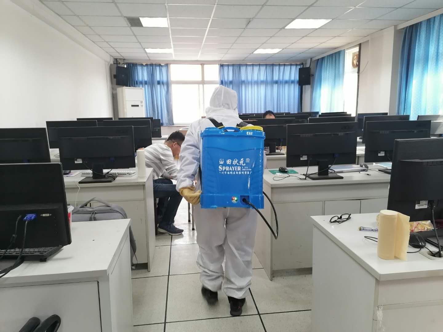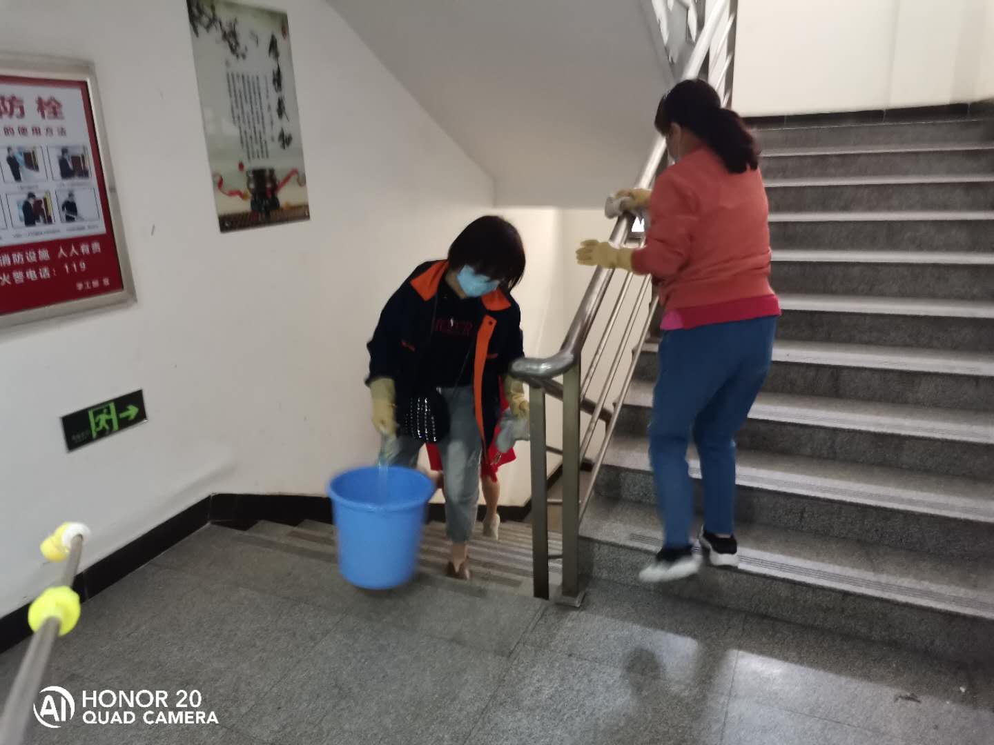 保洁绿化中心工作人员对校区、教学楼、实验楼、办公楼、家属区等进行全面消毒,对校垃圾堆放点、电梯间、楼梯扶手、家属区楼宇间、教学楼等重点、盲点、死角区域进行不少于两次的重点消毒。同时将废弃口罩进行集中消毒处理后统一回收,有效阻断病毒传播。