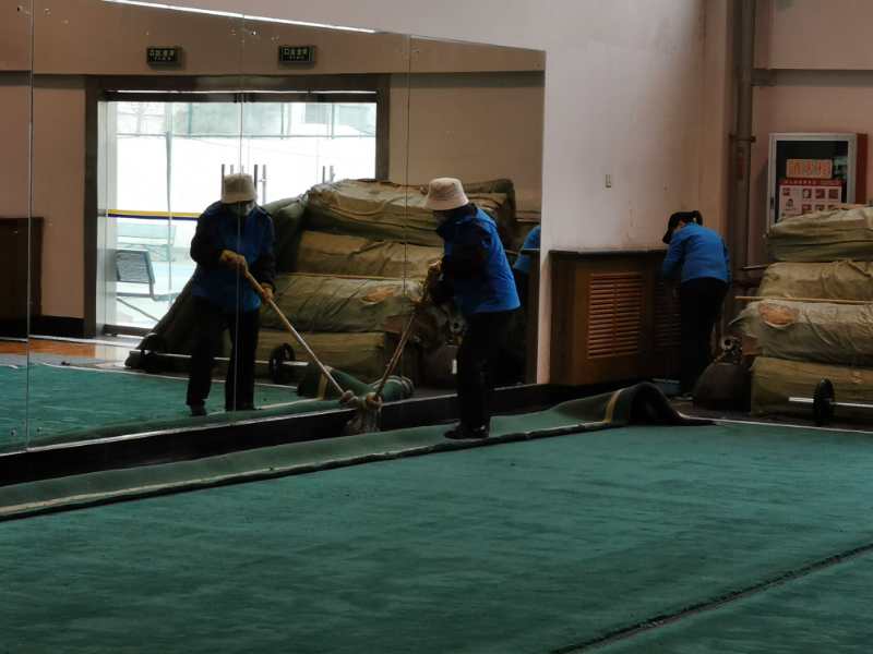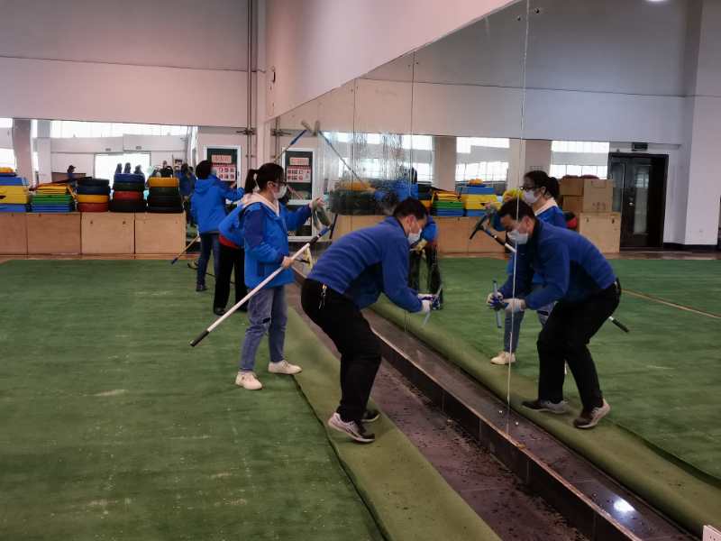 场馆中心工作人员对万象城场馆(地)进行全面清洁、消毒,对教学器材、器具等易接触物品进行重点消毒,工作人员认真、专业、细致、周到,合理使用消毒液、消毒水,在保证上课环境健康安全的同时避免过度消毒。