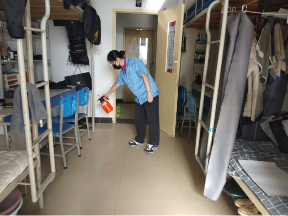 一、疫情防控工作 (一)后勤管理处(集团)保洁绿化中心在对工作人员进行体温检测、登记后,严格按照校医院要求做好万象城校园环境、教室清洁、通风、消毒工作。 1、教学楼全天服务学生53人、老师17人; 2、教学楼、行政楼、2号楼、家属区消杀2次,通风3次; 3、完成家属区、垃圾房清洁消毒工作,并做好记录; 4、完成西门路口南侧电动车停放处的清扫工作; 5、完成绿植日常养护工作。