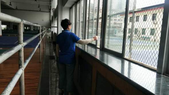 一、疫情防控工作 (一)后勤管理处(集团)保洁绿化中心在对工作人员进行体温检测、登记后,严格按照校医院要求做好万象城校园环境、教室清洁、通风、消毒工作。 1、教学楼全天服务师生共计48人次; 2、教学楼、行政楼、2号楼、家属区消杀2次,通风3次; 3、完成家属区、垃圾房清洁消杀工作,并做好消杀记录; 4、完成教学楼前场地清洗工作; 5、完成实验楼LED屏维修工作; 6、完成教学楼投影仪安装工作; 7、完成校园卫生保洁工作; 8、完成校园绿植养护及修剪工作; 9、完成6号公寓周边环境清理工作。