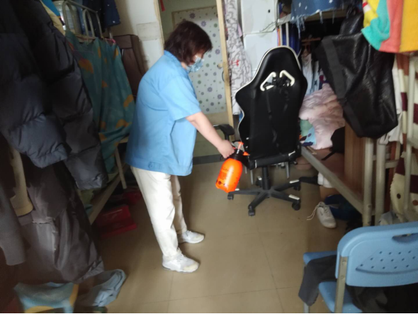 一、疫情防控工作 (一)后勤管理处(集团)保洁绿化中心在对工作人员进行体温检测、登记后,严格按照校医院要求做好万象城校园环境、教室清洁、通风、消毒工作。 1、教学楼全天服务师生共计13人次; 2、教学楼、行政楼、2号楼、家属区消杀2次,通风3次; 3、整理清扫行政楼会议室; 4、招生重点区域环境卫生保洁; 5、完成校园绿植养护及修剪工作; (二)后勤管理处(集团)学生公寓管理中心在对工作人员进行体温检测、登记后,严格按照校医院《学生公寓消毒指南》要求做好学生公寓清洁、消毒每日2次,通风工作每日3次,每次30分钟,以及学生体温检测工作。 学生公寓截止5月25日18点累计共有1059名同学返校,其中己有768名同学考完试离校回家,实际在校人数291名同学。学生公寓管理中心严格按照离校手续做好离校学生宿舍安全检查工作,确保水电关闭。今日服务学生共计867人次。