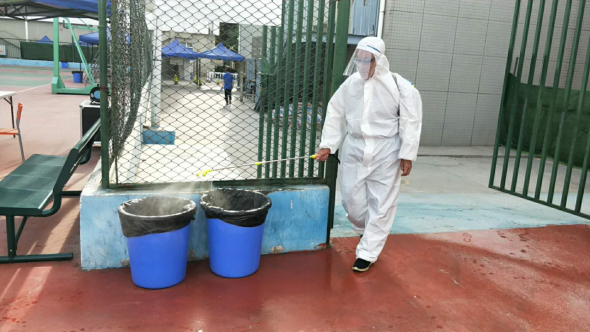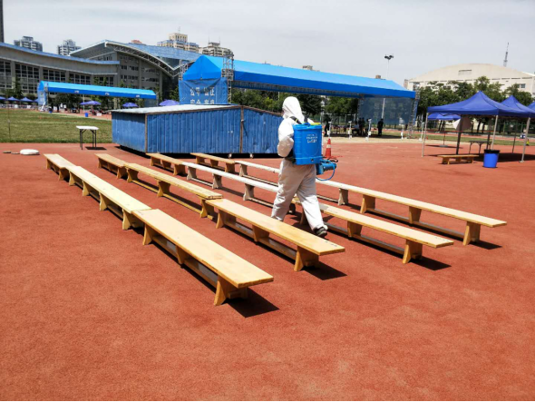 (三)后勤管理处(集团)餐饮中心5月27日全天服务师生54人次。 (四)后勤管理处(集团)场馆中心在对工作人员进行体温检测、登记后,严格按照校医院《场馆消毒指南》要求做好场馆(地)清洁、消毒、通风及师生体温检测工作,具体如下: 1、竞校训练、室外对教职员工开放场地服务师生情况: 体操馆训练14人次(教师4人) 篮排馆训练12人次(老师5人) 篮排馆锻练老师2人 第一网球场锻炼老师4人 网球馆锻炼老师64人次 以上共计96人次 2、附楼办公测温135人次(老师127人) 3、消杀、通风、卫生保洁次数: 场馆公共区域消毒2次; 场馆通风2次; 卫生保洁3次。 4、保障招生考试情况: 考试场地(田径场)消杀4次; 检录场地(篮球场)消杀4次; 通道(田径馆)消杀4次; 考试用卫生间(田径场、综合馆1层、篮球场)消杀4次; 完成考试用场地值班管理工作; 完成考试用场地清洁保障工作; 完成考试器材、物资保障工作; 完成考试场地设置、维护及相关保障工作。