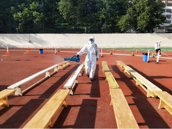 (三)后勤管理处(集团)餐饮中心5月29日全天服务师生82人次。 (四)后勤管理处(集团)场馆中心在对工作人员进行体温检测、登记后,严格按照校医院《场馆消毒指南》要求做好场馆(地)清洁、消毒、通风及师生体温检测工作,具体如下: 1、竞校训练、室外对教职员工开放场地服务师生情况: 体操馆训练11人次(老师3人) 体操馆锻炼学生17人次 足球场训练22人次(老师1人) 篮排馆训练11人次(老师4人) 篮排馆锻练4人次(老师1人) 第一网球场锻练10人(老师9人) 网球馆锻炼老师15人次 地掷球馆锻炼2人次(老师1人) 羽毛球馆锻炼19人次(老师15人) 艺术馆锻炼学生2人次 以上共计113人次 2、附楼办公体温检测75人次 (老师64人) 3、消杀、通风、卫生保洁次数: 场馆公共区域消毒2次; 场馆通风2次; 卫生保洁3次。 4、保障招生考试情况: 考试场地(田径场)消杀4次; 检录场地(篮球场)消杀4次; 通道(田径馆)消杀4次; 考试用卫生间(田径场、综合馆1层、篮球场)消杀4次; 完成考试用场地值班管理工作; 完成考试用场地清洁保障工作; 完成考试器材、物资保障工作; 完成考试场地设置、维护及相关保障工作。