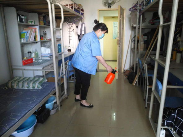 一、疫情防控工作 (一)后勤管理处(集团)保洁绿化中心在对工作人员进行体温检测、登记后,严格按照校医院要求做好万象城校园环境、教室清洁、通风、消毒工作。 1、教学楼、行政楼、2号楼、家属区消杀2次,通风3次 2、教学楼道路外围清洁; 3、完成校园绿植养护及修剪工作。 (二)后勤管理处(集团)学生公寓管理中心在对工作人员进行体温检测、登记后,严格按照校医院《学生公寓消毒指南》要求做好学生公寓清洁、消毒每日2次,通风工作每日3次,每次30分钟,以及学生体温检测工作。 学生公寓截止5月29日18点累计共有1118名同学返校,其中己有858名同学考完试离校回家,实际在校人数260名同学。学生公寓管理中心严格按照离校手续做好离校学生宿舍安全检查工作,确保水电关闭。今日服务学生共计731人次。