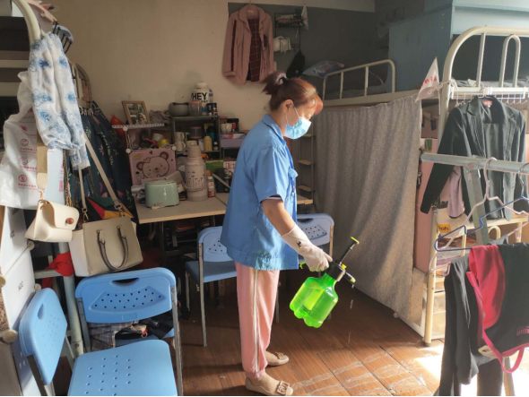 一、疫情防控工作 (一)后勤管理处(集团)学生公寓管理中心在对工作人员进行体温检测、登记后,严格按照校医院《学生公寓消毒指南》要求做好学生公寓清洁、消毒每日2次,通风工作每日3次,每次30分钟,以及学生体温检测工作。 学生公寓截止5月31日18点,累计共有1145名同学返校,其中累计离校人数891名同学,现实际在校人数254名同学。学生公寓管理中心严格按照离校手续做好离校学生宿舍安全检查工作,确保水电关闭。今日服务学生共计765人次。
