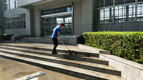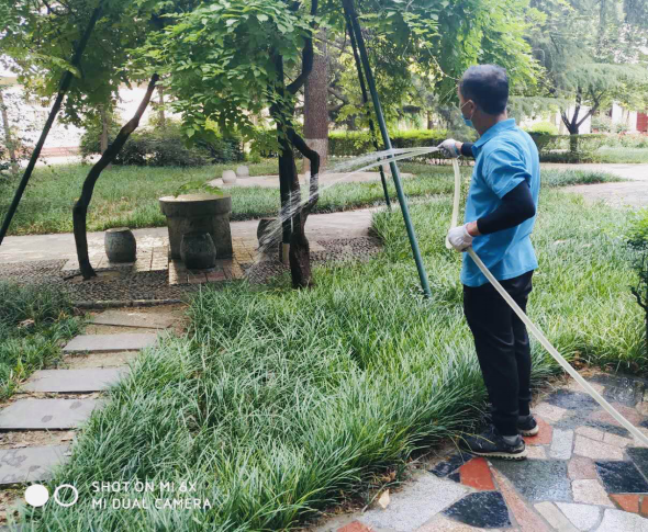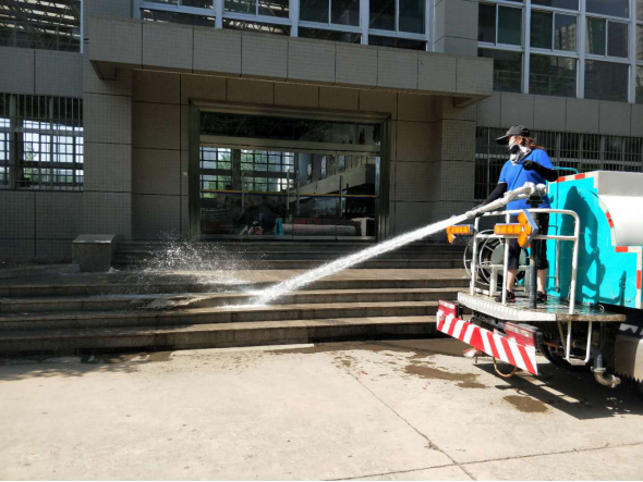一、疫情防控工作 (一)后勤管理处(集团)保洁绿化中心在对工作人员进行体温检测、登记后,严格按照校医院要求做好万象城校园环境、教室清洁、通风、消毒工作。 1、教学楼全天服务师生共计50人次; 2、考试服务保障; 2、教学楼、行政楼、2号楼、家属区消杀2次,通风3次; 3、日常保洁工作; 4、行政楼空调上和窗户外的爬山虎树叶修剪; 5、完成校园绿植养护及修剪工作。