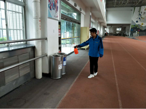 (三)后勤管理处(集团)场馆中心在对工作人员进行体温检测、登记后,严格按照校医院《场馆消毒指南》要求做好场馆(地)清洁、消毒、通风及师生体温检测工作,具体如下: 1、竞校训练、室外对教职员工开放场地服务师生情况: 体操馆锻炼5人次(教职工3人)训练12人次(教练3人) 网球馆教职工锻炼6人次 篮排馆训练12个次(老师5人) 田径馆训练52人次(老师5人) 以上共计18人次 2、附楼办公体温检测49人次 (老师44人) 艺术馆消防维修2人次 3、消杀、通风、卫生保洁次数: 场馆公共区域消毒2次; 场馆通风2次; 卫生保洁3次。
