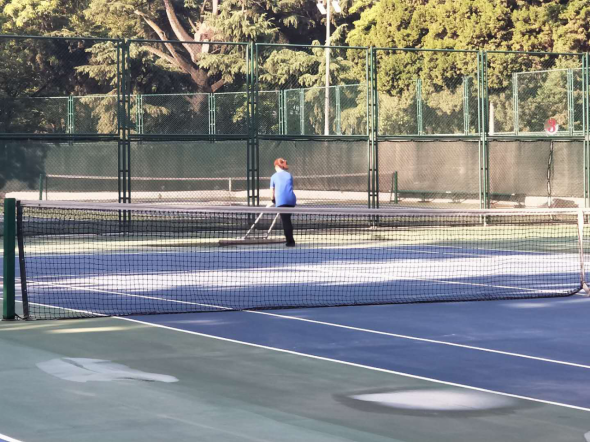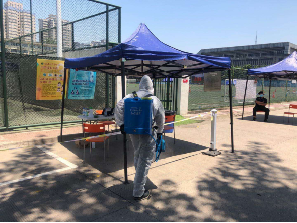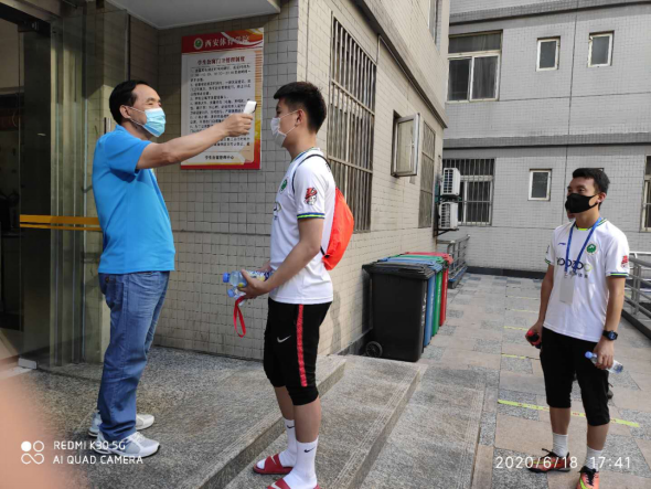 (三)后勤管理处(集团)场馆中心在对工作人员进行体温检测、登记后,严格按照校医院《场馆消毒指南》要求做好场馆(地)清洁、消毒、通风及师生体温检测工作,具体如下: 1、竞校训练、室外对教职员工开放场地服务师生情况: 体操馆训练12人次(教师3人),锻炼21人次(老师8人) 篮排馆训练15人次(老师4人)锻炼53人次(老师8人) 地掷球馆训练9人次(老师1人) 综合馆锻炼11人次; 网球馆锻炼18人次 以上共计139人次 2、附楼办公体温检测40人次 3、消杀、通风、卫生保洁次数: 场馆公共区域消毒2次; 场馆通风2次; 卫生保洁3次。 4、保障招生考试情况: 考试场地(足球场)消杀4次; 考试场地(田径馆)消杀4次; 检录场地(第二网球场)消杀4次; 学生等候成绩场地(第二田径场)消杀4次 考试用卫生间(足球场、综合馆1层)消杀4次; 完成考试用场地值班管理工作; 完成考试用场地清洁保障工作; 完成考试器材、物资保障工作; 完成考试场地设置、维护及相关保障工作。