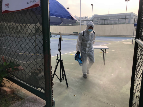 (二)后勤管理处(集团)场馆中心在对工作人员进行体温检测、登记后,严格按照校医院《场馆消毒指南》要求做好场馆(地)清洁、消毒、通风及师生体温检测工作,具体如下: 1、竞校训练、室外对教职员工开放场地服务师生情况: 体操馆锻炼9人次(老师2人); 综合馆锻炼8人次 以上共计17人次 2、附楼办公体温检测8人次 ; 招办布置考场42人次。 3.消杀、通风、卫生保洁次数: 场馆公共区域消毒2次; 场馆通风2次; 卫生保洁3次。 4、保障招生考试情况: 考试场地(足球场)消杀4次; 考试场地(田径馆)消杀4次; 检录场地(第二网球场)消杀4次; 学生等候成绩场地(第二田径场)消杀4次 考试用卫生间(足球场、综合馆1层)消杀4次; 完成考试用场地值班管理工作; 完成考试用场地清洁保障工作; 完成考试器材、物资保障工作; 完成考试场地设置、维护及相关保障工作。