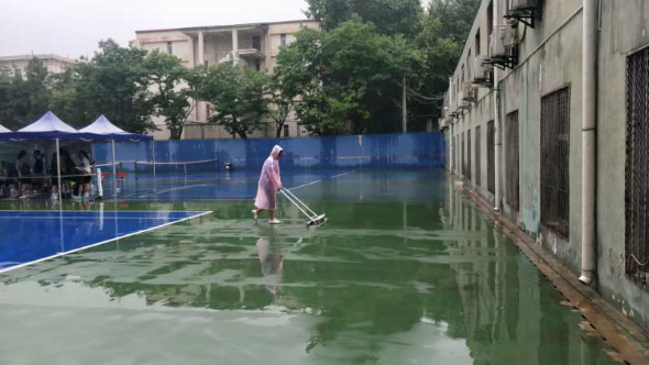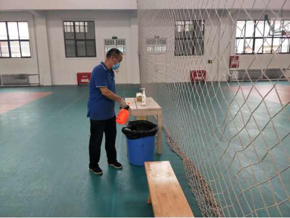 (三)后勤管理处(集团)场馆中心在对工作人员进行体温检测、登记后,严格按照校医院《场馆消毒指南》要求做好场馆(地)清洁、消毒、通风及师生体温检测工作,具体如下: 1、竞校训练、室外对教职员工开放场地服务师生情况: 体操馆训练31人次(老师7人)锻炼27人次(老师13人); 田径馆训练75人次(老师5人) 地掷球馆训练13人次(老师3人) 第一田径场训练30人次(老师1次) 第二田径场锻炼4人次 以上共计180人次 2、附楼办公体温检测28人次 3、消杀、通风、卫生保洁次数: 场馆公共区域消毒2次; 场馆通风2次; 卫生保洁3次。 4、保障招生考试情况: 考试场地(篮球馆)消杀4次 考试场地(排球馆)消杀4次; 考试场地(附篮球馆)消杀4次; 学生等候成绩场地(第一网球场)消杀4次 考试用卫生间(篮排球馆)消杀4次; 完成考试用场地值班管理工作; 完成考试用场地清洁保障工作; 完成考试器材、物资保障工作; 完成考试场地设置、维护及相关保障工作。