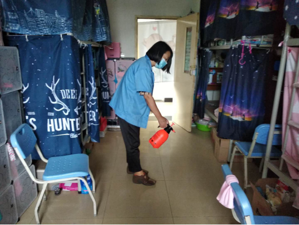(二)后勤管理处(集团)学生公寓管理中心在对工作人员进行体温检测、登记后,严格按照校医院《学生公寓消毒指南》要求做好学生公寓清洁、消毒每日2次,通风工作每日3次,每次30分钟,以及学生体温检测工作。 学生公寓截止6月22日18点累计共有1428名同学返校,其中己有1288名同学考完试离校回家,实际在校人数140名同学。学生公寓管理中心严格按照离校手续做好离校学生宿舍安全检查工作,确保水电关闭。今日服务学生共计460人次。