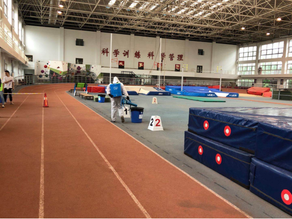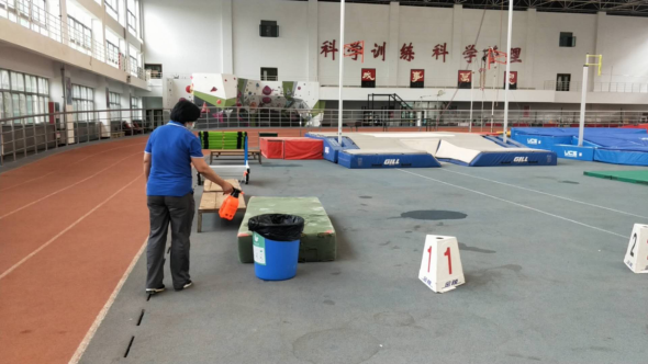 (三)后勤管理处(集团)场馆中心在对工作人员进行体温检测、登记后,严格按照校医院《场馆消毒指南》要求做好场馆(地)清洁、消毒、通风及师生体温检测工作,具体如下: 1、竞校训练、室外对教职员工开放场地服务师生情况: 体操馆训练12人次(老师3人); 篮排馆训练15人次(老师4人); 地掷球馆训练7人次(老师1人); 第一田径场训练30人次(老师1人); 第一网球场锻炼10人次。 以上共计74人次 2、附楼办公体温检测16人次 3.消杀、通风、卫生保洁次数: 场馆公共区域消毒2次; 场馆通风2次; 卫生保洁3次。 4、保障招生考试情况: 考试场地(套路馆)消杀4次; 考试场地(田径馆)消杀4次; 考试用卫生间(综合馆一层)消杀4次; 完成考试用场地值班管理工作; 完成考试用场地清洁保障工作; 完成考试器材、物资保障工作; 完成考试场地设置、维护及相关保障工作。