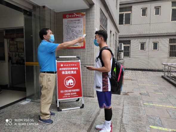 (三)后勤管理处(集团)场馆中心在对工作人员进行体温检测、登记后,严格按照校医院《场馆消毒指南》要求做好场馆(地)清洁、消毒、通风及师生体温检测工作,具体如下: