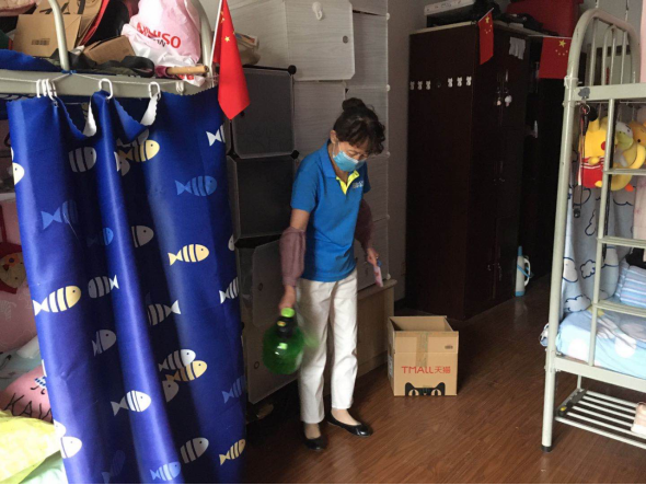 (二)后勤管理处(集团)学生公寓管理中心在对工作人员进行体温检测、登记后,严格按照校医院《学生公寓消毒指南》要求做好学生公寓清洁、消毒每日2次,通风工作每日3次,每次30分钟,以及学生体温检测工作。