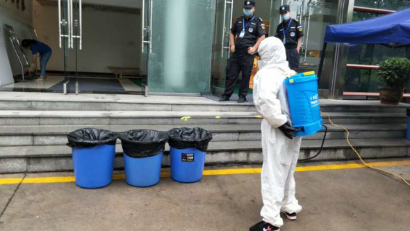 (一)后勤管理处(集团)保洁绿化中心在对工作人员进行体温检测、登记后,严格按照校医院要求做好万象城校园环境、教室清洁、通风、消毒工作。