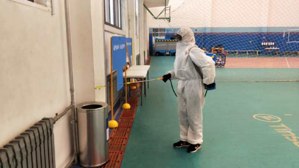 考试场地(乒乓球馆)消杀4次