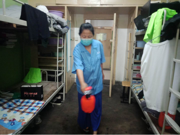 (二)后勤管理处(集团)学生公寓管理中心在对工作人员进行体温检测、登记后,严格按照校医院《学生公寓消毒指南》要求做好学生公寓清洁、消毒每日2次,通风工作每日3次,每次30分钟,以及学生体温检测工作。