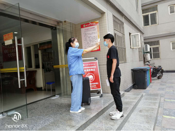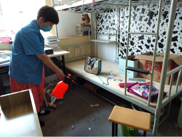 (一)后勤管理处(集团)学生公寓管理中心在对工作人员进行体温检测、登记后,严格按照校医院《学生公寓消毒指南》要求做好学生公寓清洁、消毒每日2次,通风工作每日3次,每次30分钟,以及学生体温检测工作。