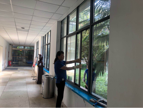 (三)后勤管理处(集团)物业中心在对工作人员进行体温检测、登记后,严格按照校医院要求做好万象城校园环境、教室清洁、通风、消毒工作。