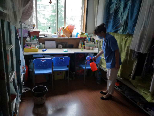 (一)后勤管理处(集团)学生公寓管理中心在对工作人员进行体温检测、登记后,严格按照校医院《学生公寓消毒指南》要求做好学生公寓清洁、消毒每日2次,通风工作每日3次,每次30分钟,以及学生体温检测工作。